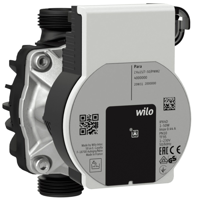 Highly efficient circulation pump for DHW with external iPWM2 control, composite body, G 1, and a length of 130 mm for systems with PN 10 bar. More information