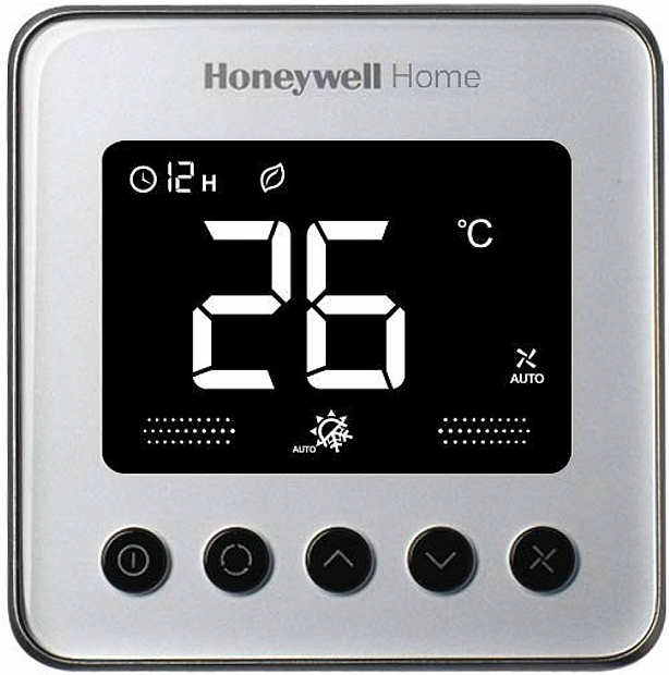 Silver brushed Honeywell Orchid 3 thermostat (TF428LN-RSS-U) for fan coil units with a two-pipe or four-pipe system. More information