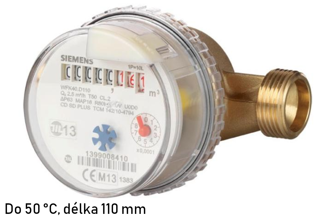 Residential water meter SIEMENS WFK40.D110, up to 50°C, with a construction length of 110mm. More information